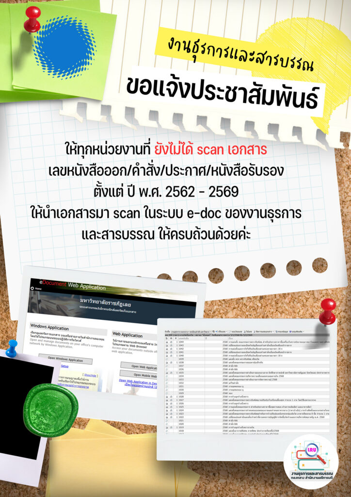 ข่าวประชาสัมพันธ์ แจ้งให้หน่วยงานนำเอกสารมา Scan ลงระบบ E-Doc 18 กุมภาพันธ์ 2026 thirada thanakitwarat